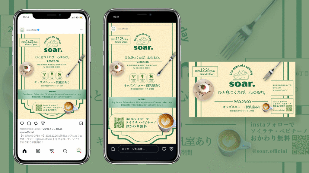 渋谷エリアにオープン予定のカフェ【Soar.】のバナーを制作いたしました。【自主制作】