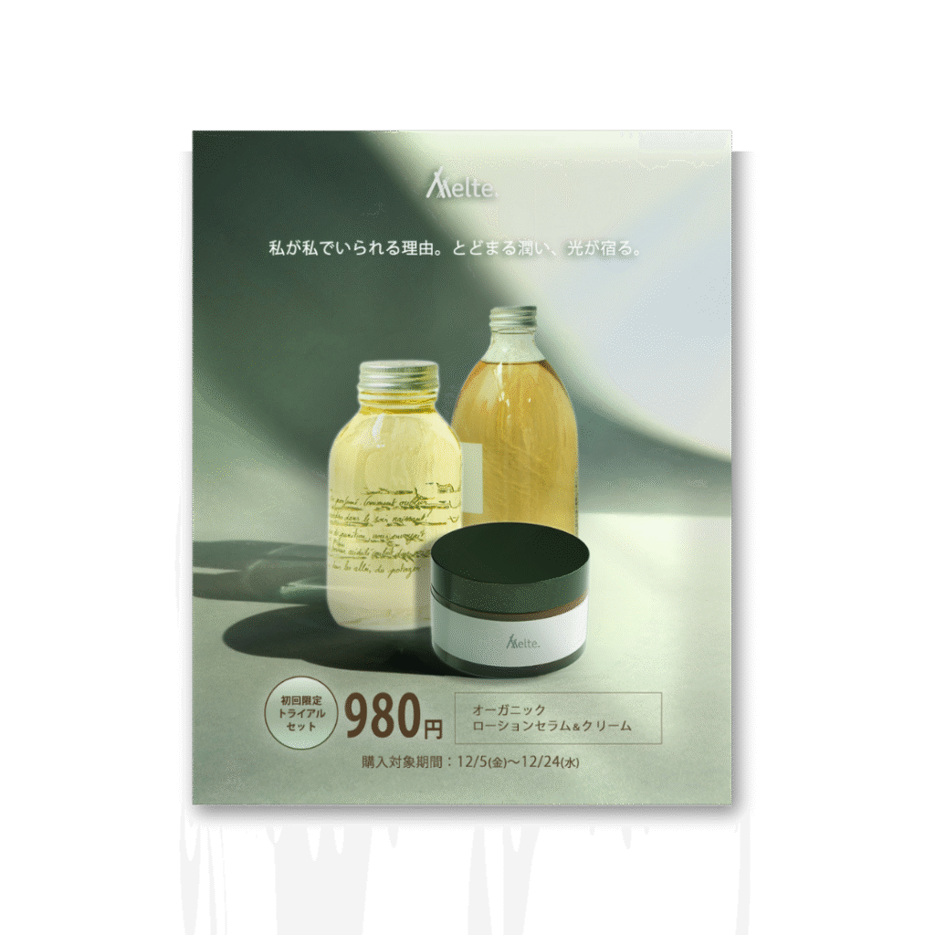 【Melte.】バナー制作(架空案件) Outline 制作概要 コスメスキンケアブランド【Melte.】のバナーを制作いたしました。【自主制作】設定したペルソ…